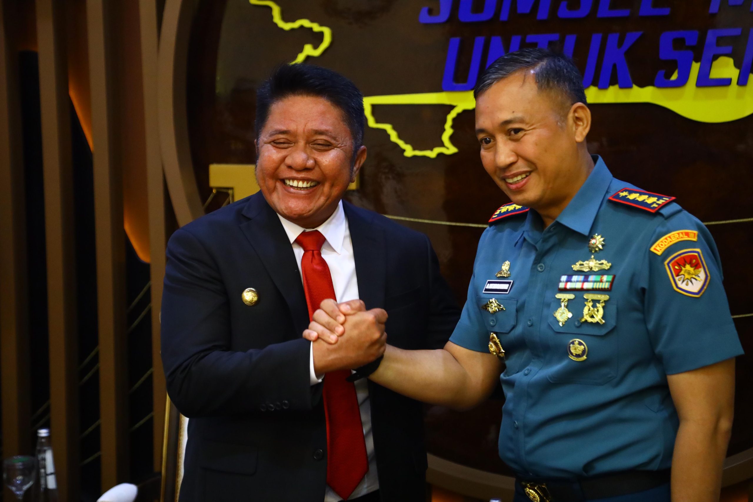 Gubernur Herman Deru mengucapkan selamat datang dan selamat bertugas kepada Danlanal Palembang yang baru. Ia menyampaikan optimisme atas kolaborasi yang akan terbangun ke depan.