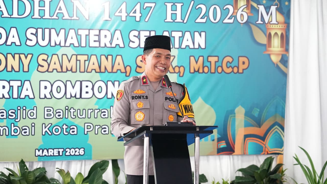 Trabaznews.com, Prabumulih – Penguatan stabilitas keamanan di bulan suci Ramadhan menjadi prioritas jajaran Polda Sumsel. Wakapolda Sumsel, Rony Samtana, memimpin langsung kegiatan Safari Ramadhan di Masjid Baiturrahman, Kota Prabumulih, Selasa (3/3/2026).
