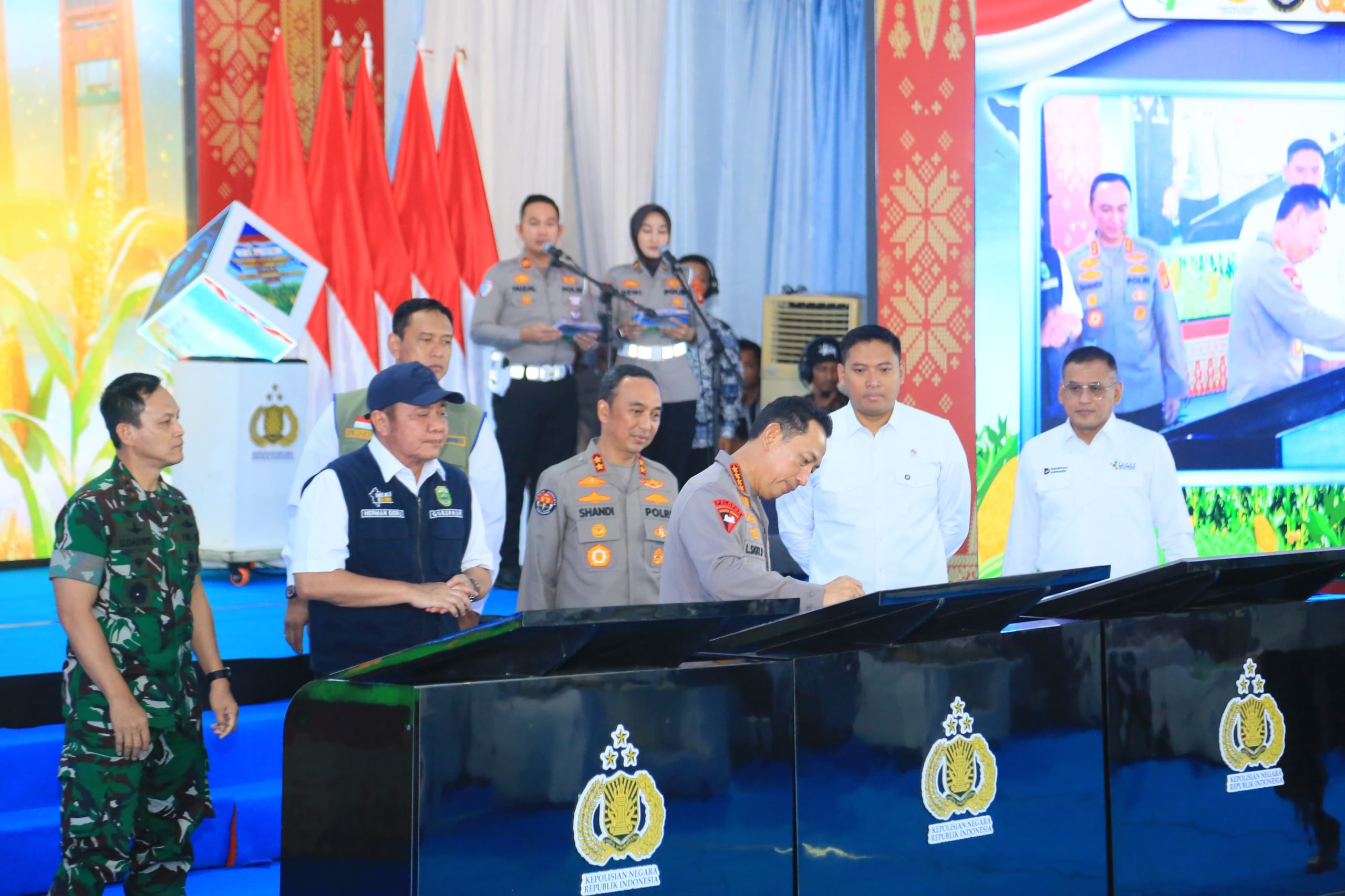 Kegiatan tanam jagung serentak tersebut juga dirangkaikan dengan peluncuran 57 Jembatan Merah Putih Presisi, peresmian Pakri City Park, serta renovasi Grand Kemala Polda Sumsel.