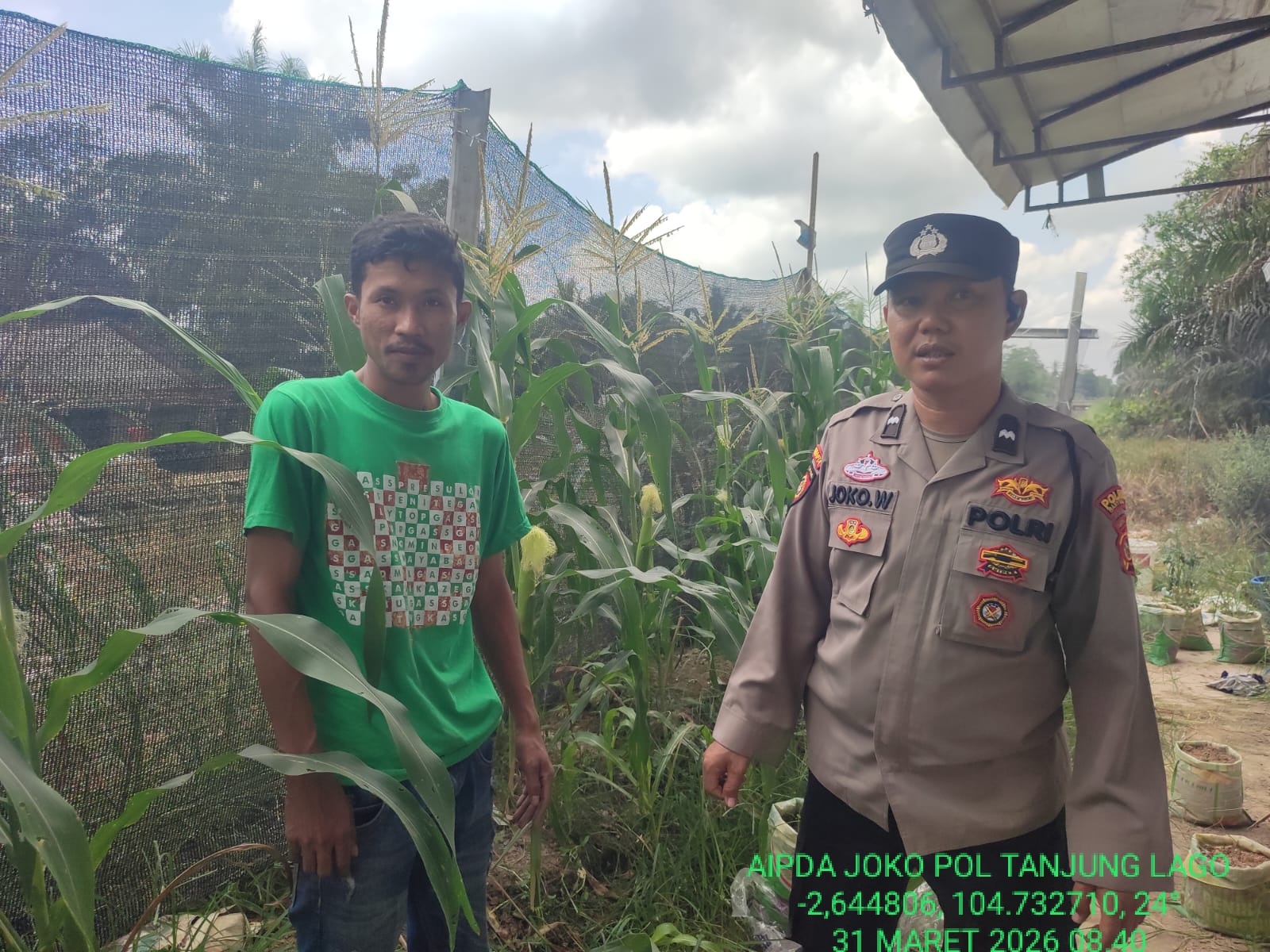 Kegiatan yang berlangsung pada hari Selasa (31/3/2026) pukul 13.10 WIB hingga selesai ini dipusatkan di Desa Bunga Karang, Kabupaten Banyuasin. Dalam giat tersebut, Aipda Joko Winarto tidak hanya memberikan himbauan, tetapi juga turun langsung menggerakkan warga untuk memanfaatkan lahan pekarangan maupun lahan tidur sebagai langkah konkret mendukung ketahanan pangan.